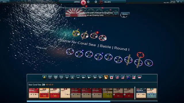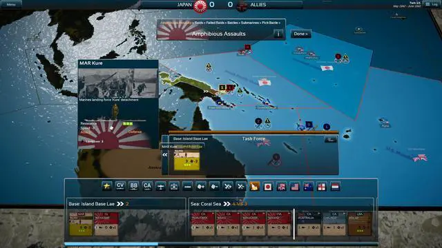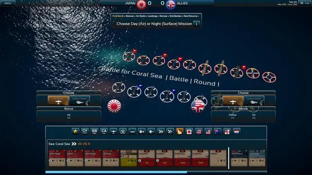 Each battle follows the same process below, for as long as units of both sides remain in the currently selected sea area: