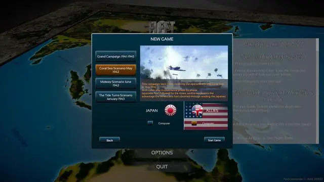 Fleet Commander: Pacific is a grand strategic simulation of the naval war in the Pacific from 1941 to 1945. All major surface combat ships of the Japanese and Allied navies are present in this streamlined reproduction of the biggest maritime war ever.
