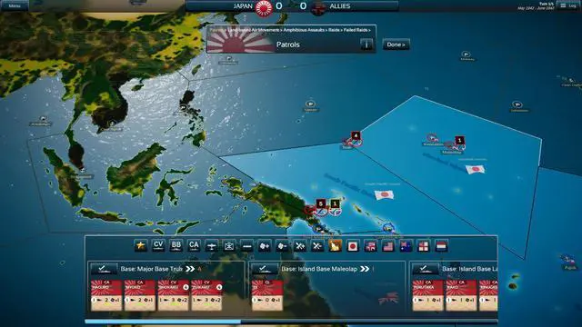 They will arrive at the start of each turn in specified ports. If such a port is not available or unfriendly, a default port is usually selected in its place. On certain turns, some ships must be picked up and removed, as they are sent to other theaters of operations. Those not removed shall be replaced by possibly equivalent ships if the mandated ships have been sunk already. Land-based planes, and Marines destroyed before may automatically return to play in the pool (depends on scenario scale and duration).