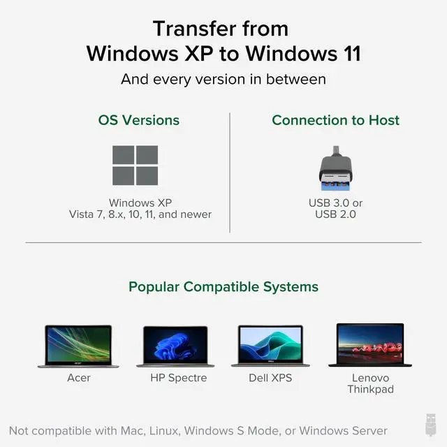 Important: This cable is designed for transferring files and folders only. Installed programs and applications cannot be transferred and must be reinstalled from their original discs or installation files.