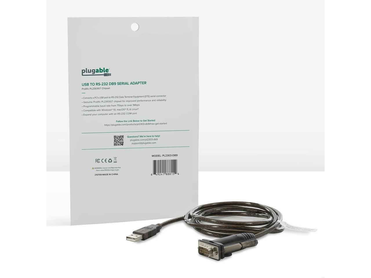 Plugable USB to Serial Adapter Compatible with Windows, Mac, Linux (RS-232/DB9 DTE Male Connector, Prolific PL2303GT Chipset)