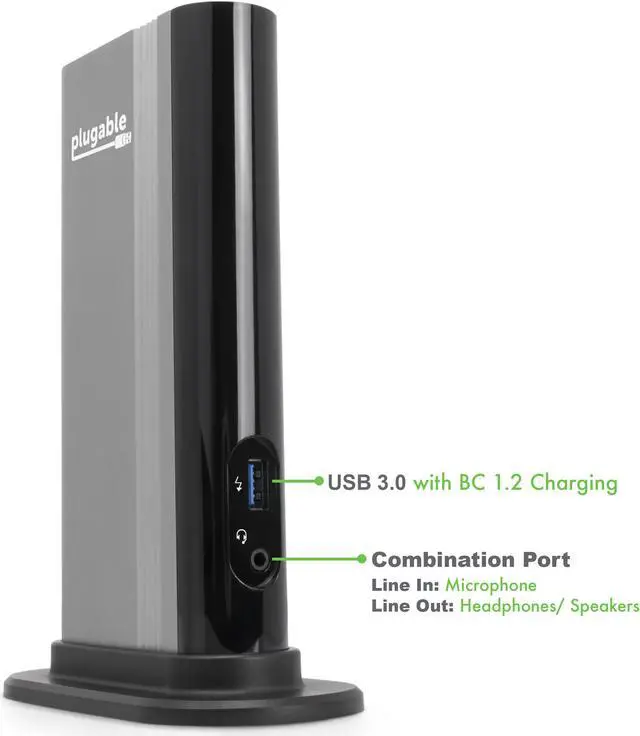 Plugable's Thunderbolt 3 Single Display Docking Station (TBT3-UDV) offers high-performance expansion of your Thunderbolt 3-enabled Mac or compatible Windows Thunderbolt 3 system while also providing up to 60W of power to charge the host. Connect a single display up to 4K 60Hz (4096x2160 @ 60Hz) via the integrated DisplayPort output, or an HDMI display using the included Active DisplayPort to HDMI adapter. Thunderbolt 3's massive 40Gbps bandwidth enables you to run your high resolution display connected through the dock at the full native performance of your system's graphics processor while also enabling access to your wired network and existing USB peripherals.