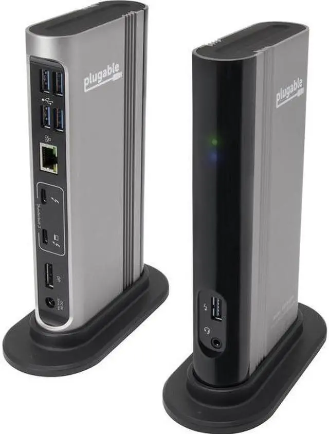 If you have a Thunderbolt 3 host system which supports two video outputs, a separate purchase of one of the following Plugable adapter models is required: USBC-DP, USBC-HDMI, USBC-DVI, USBC-VGA