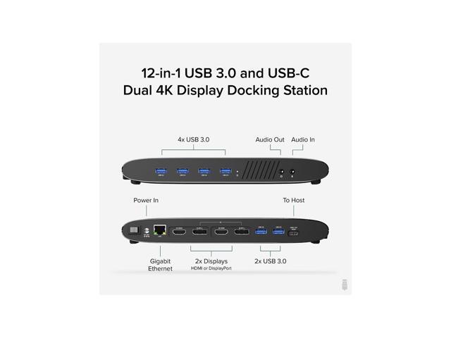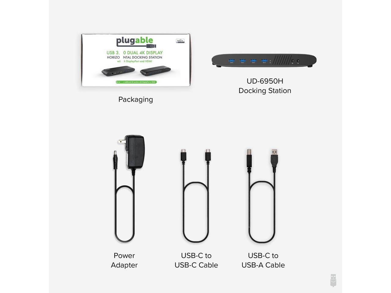 - EXPANDABILITY - Plugable UD-6950H USB dock supports dual 4K displays with either HDMI or DisplayPort, Gigabit Ethernet, audio input/output & six USB 3.0 ports