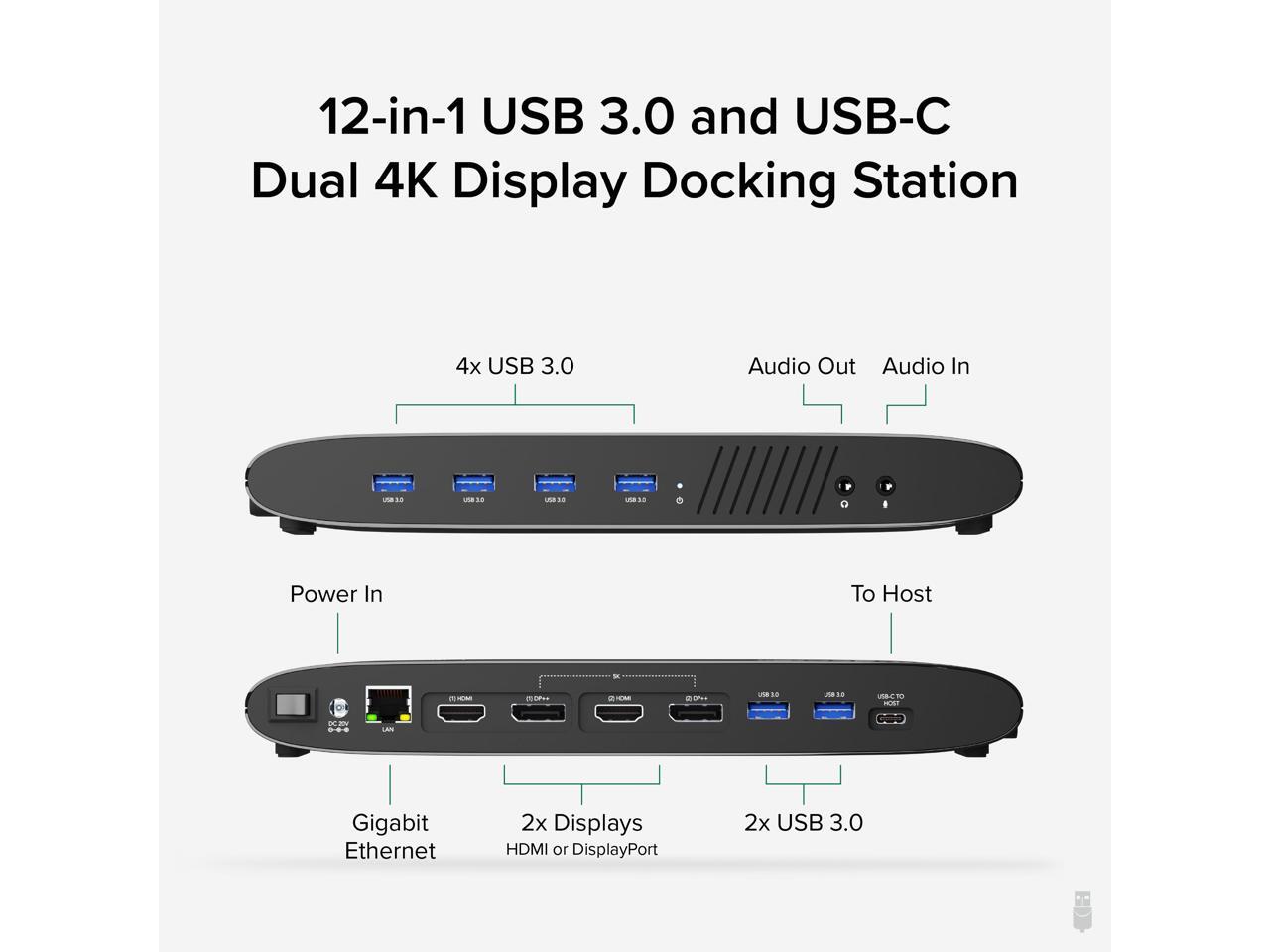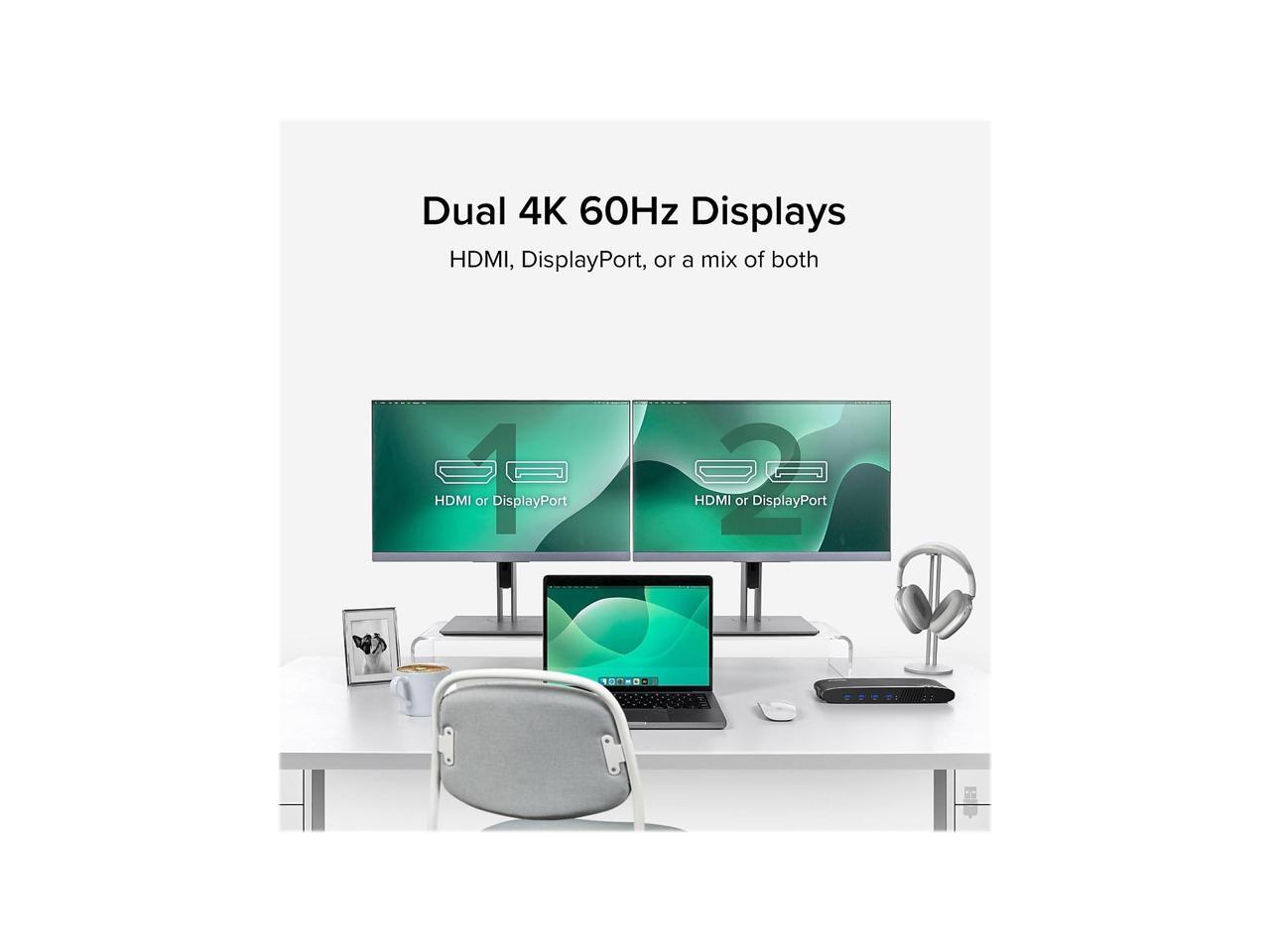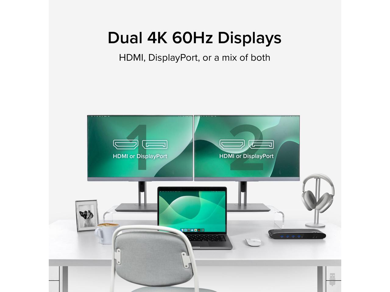 - DUAL 4K DISPLAYS - Laptop dock supports up to 4K on two independent displays using either DisplayPort 1.2 or HDMI 2.0, also supports most common resolutions including 3840x1080, 2560x1440, 1080p and more