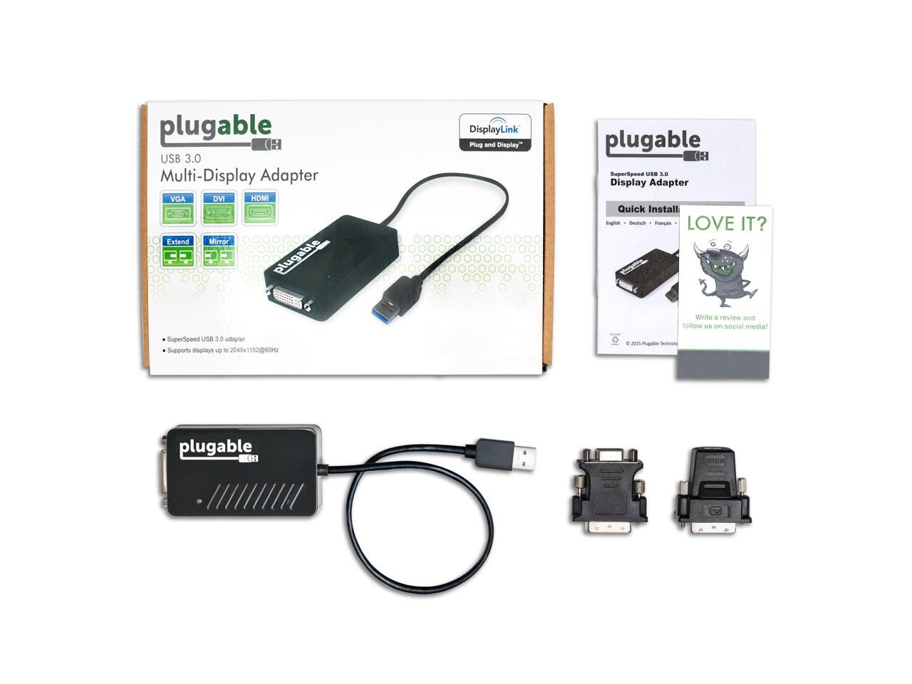 Plugable USB 3.0 to DVI/VGA/HDMI Video Graphics Adapter for Multiple Monitors up to 2048x1152 Supports Windows 10, 8.1, 7, XP, and Mac 10.14+