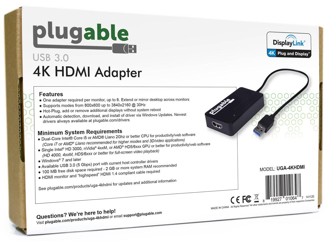 Plugable USB 3.0 to HDMI 4K UHD Video Graphics Adapter for Multiple Monitors up to 3840x2160 Supports Windows 10, 8.1, 7, and Mac 10.14+
