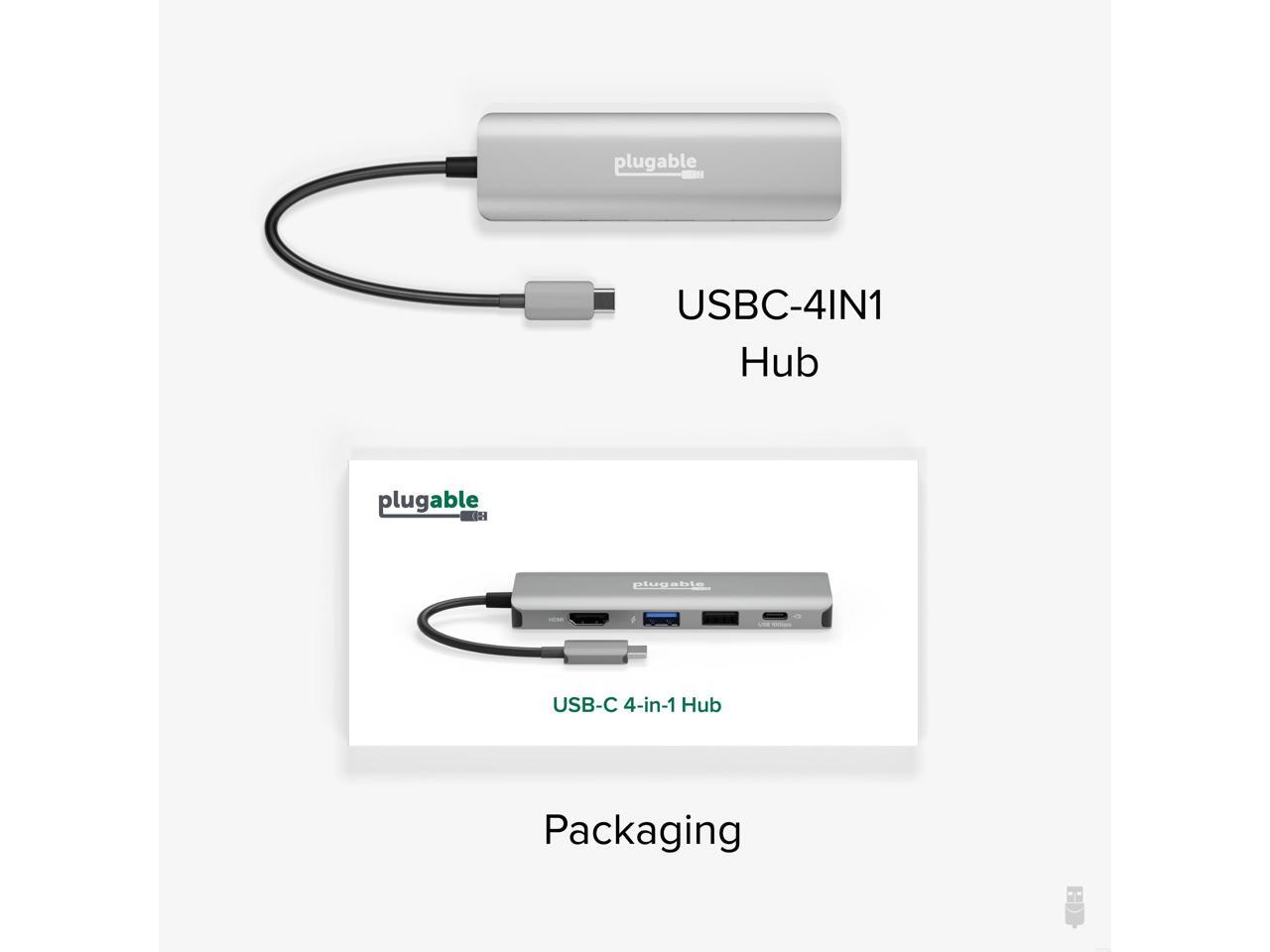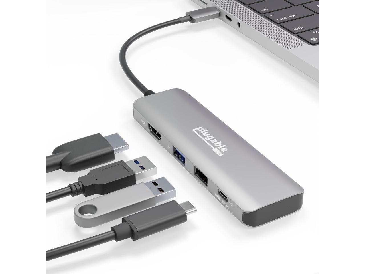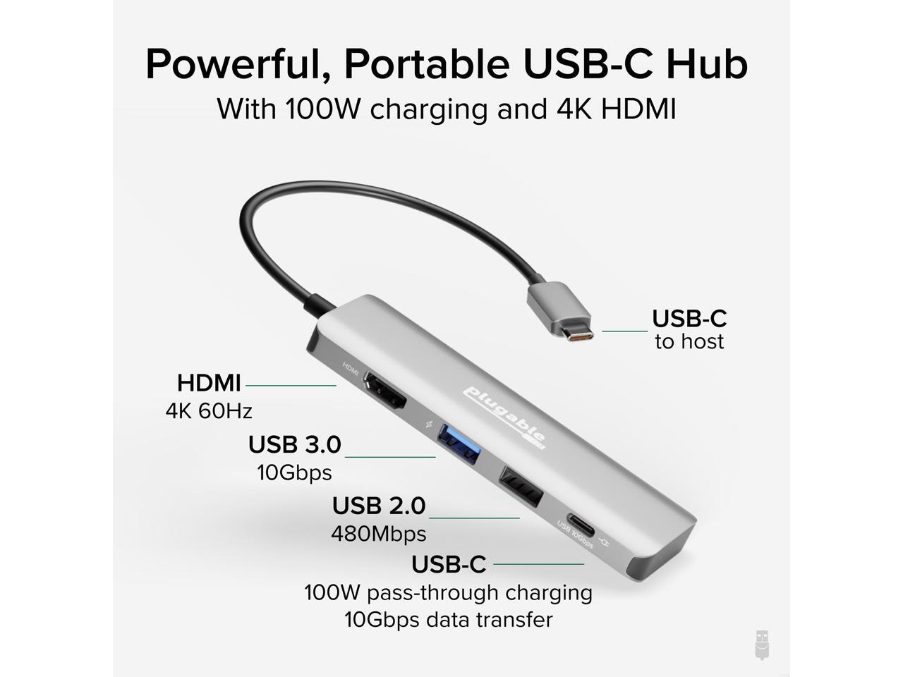 Plugable USB C Hub Multiport Adapter, 4 in 1, 100W Pass Through Charging, USB C to HDMI 4K 60Hz, Multi USB Port Hub for Windows, Mac, Ipad Pro, Chromebook, Thunderbolt (USBC-4IN1)