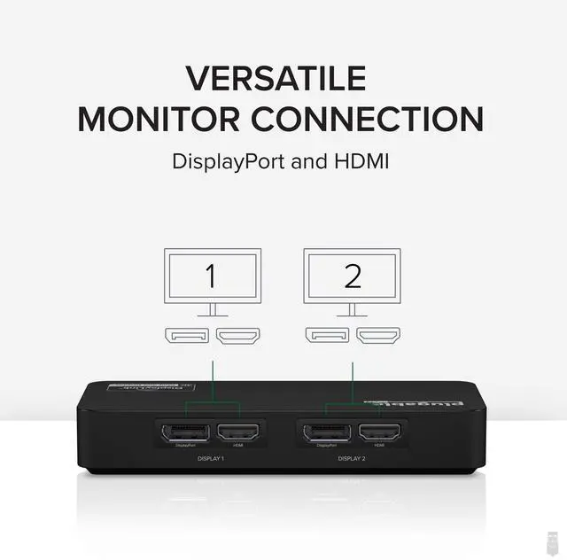 Equipped with the state of the art DisplayLink DL-6950 chipset, our adapter can support two external HDMI 2.0 or DP 1.2 displays up to 4K resolutions per display from the HDMI 2.0 or DP 1.2 outputs.