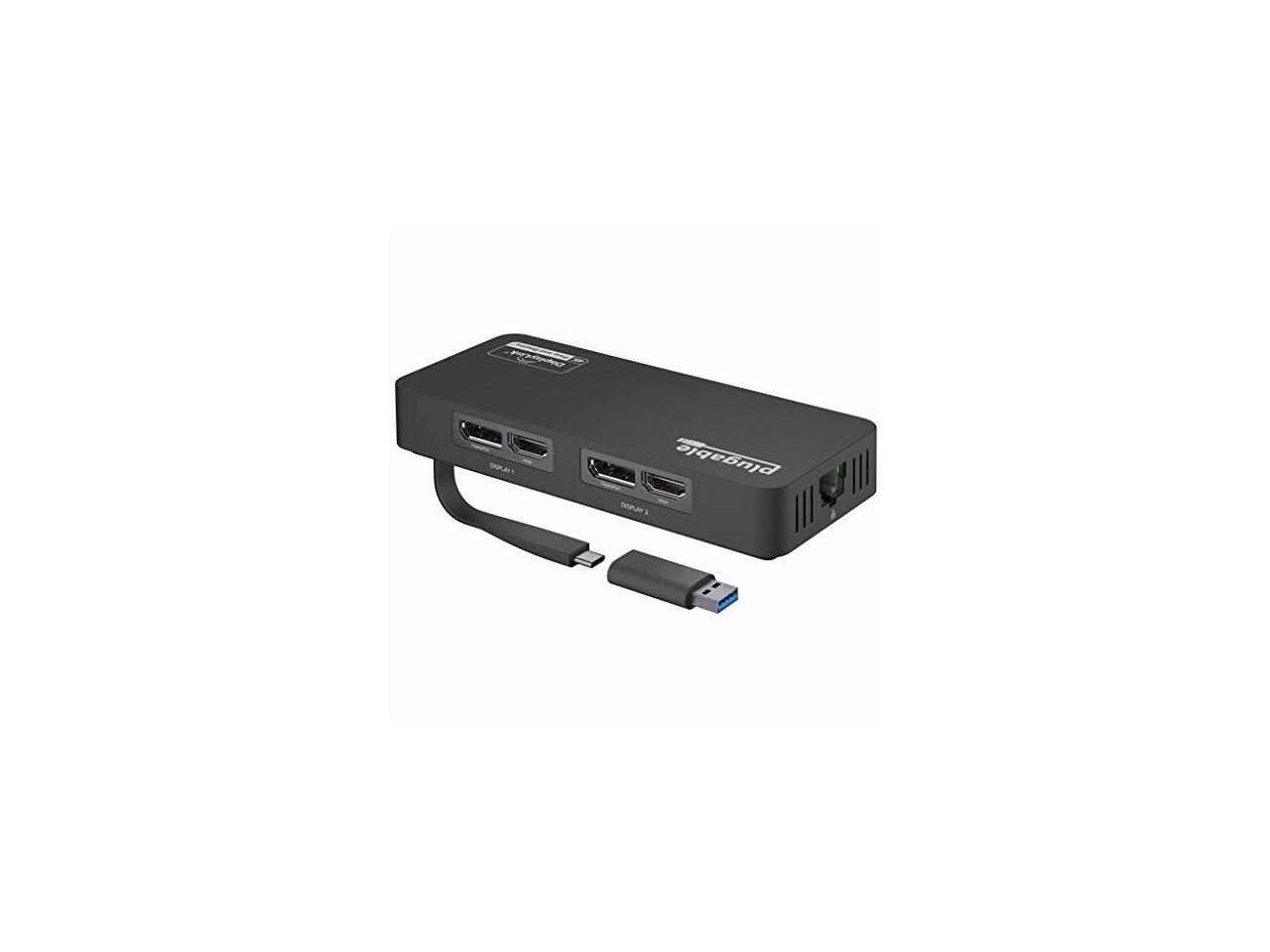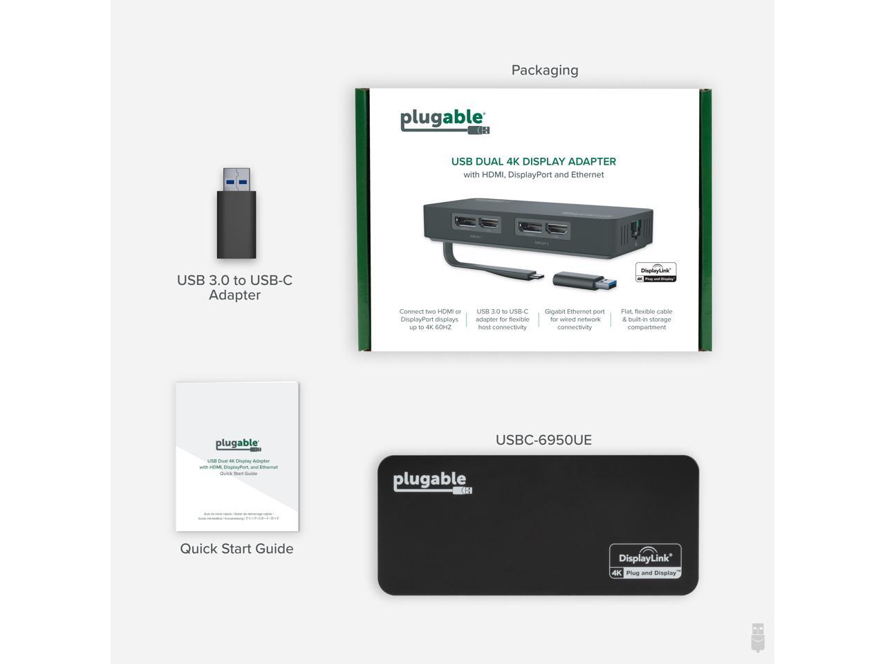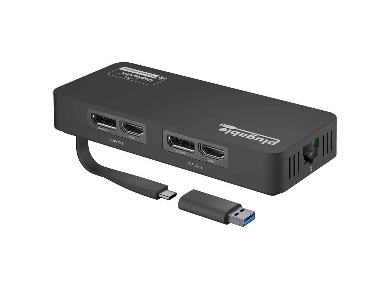 Plugable 4K DisplayPort and HDMI Dual Monitor Adapter with Ethernet for USB 3.0 and USB-C, Compatible with Windows and Mac