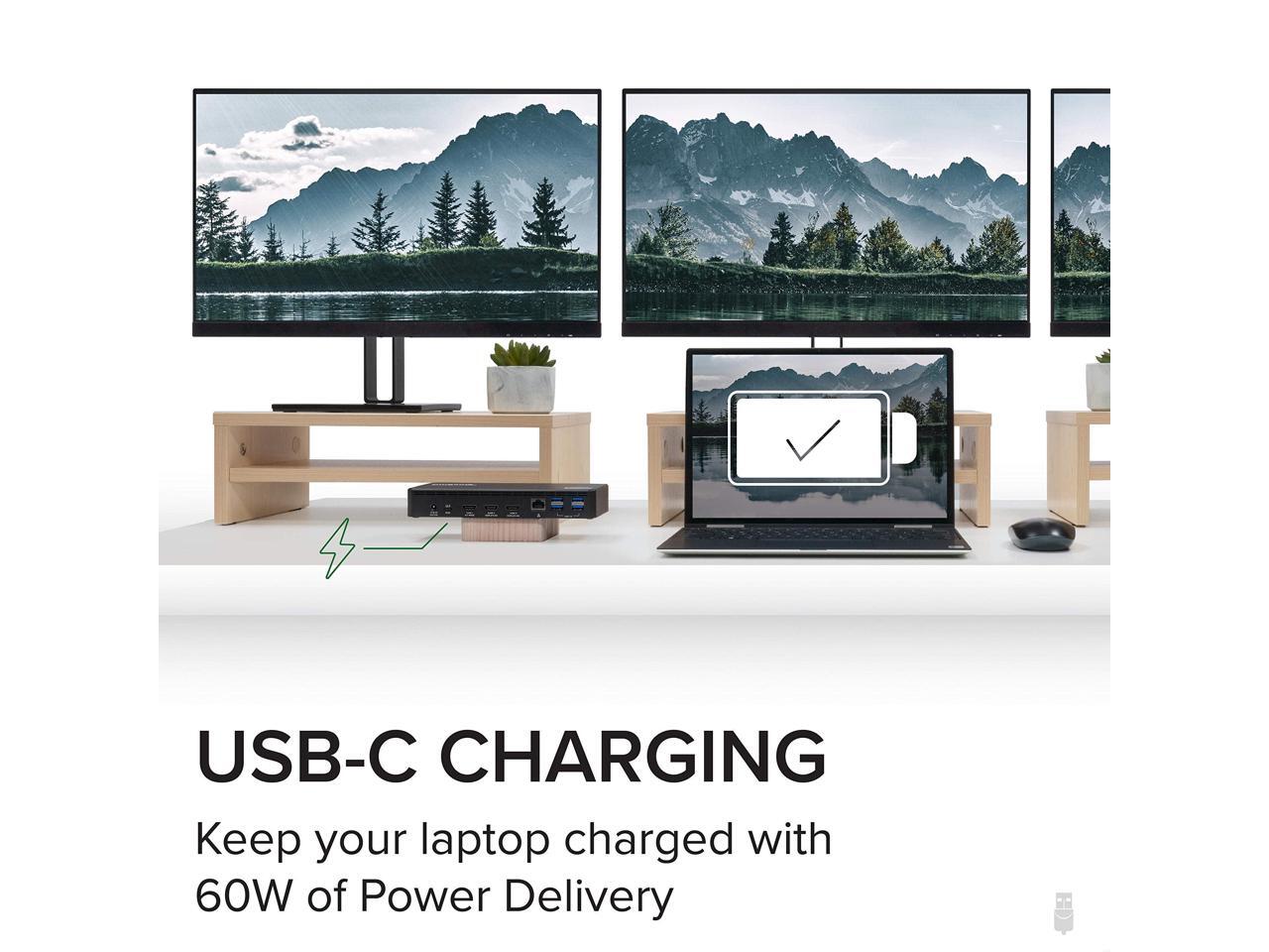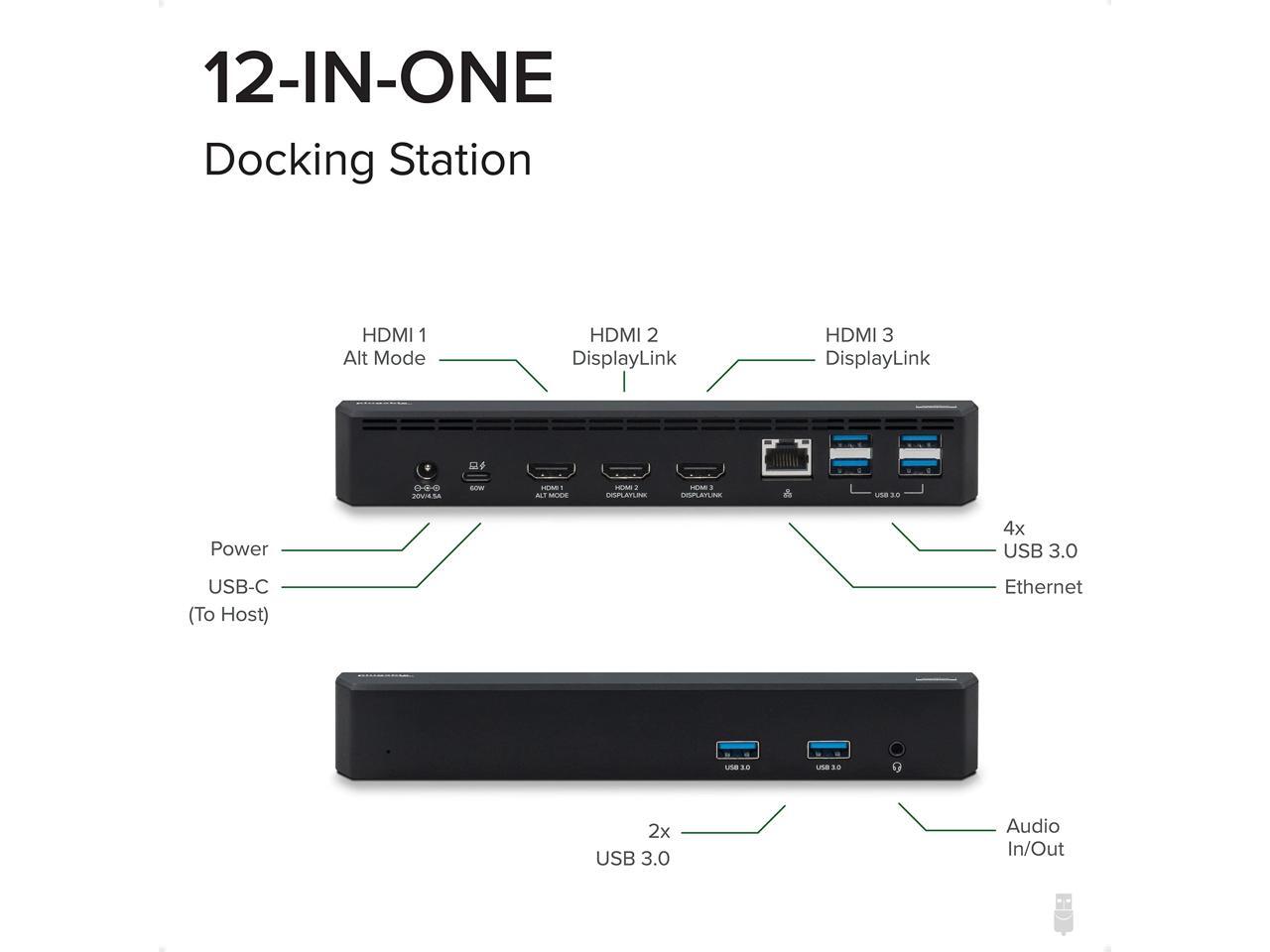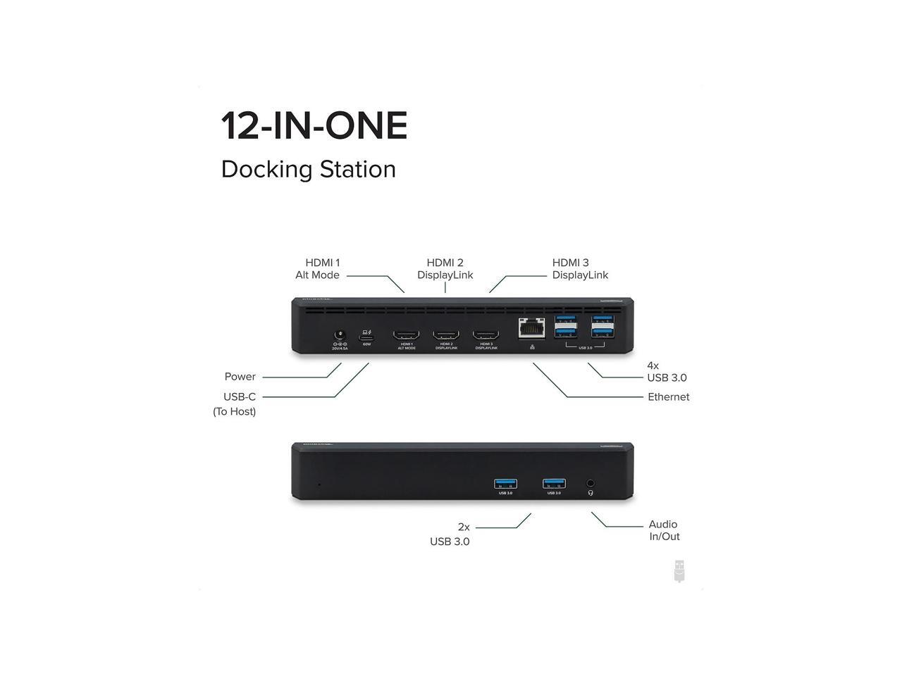 - 12-in-1 Expansion - With a compatible USB-C or Thunderbolt 3 Windows, Mac, or ChromeOS laptop this laptop docking station can charge your device, connect up to 3 HDMI monitors, add Gigabit Ethernet, 3.5mm TRRS headset jack, and provides 6x USB 3.0 ports