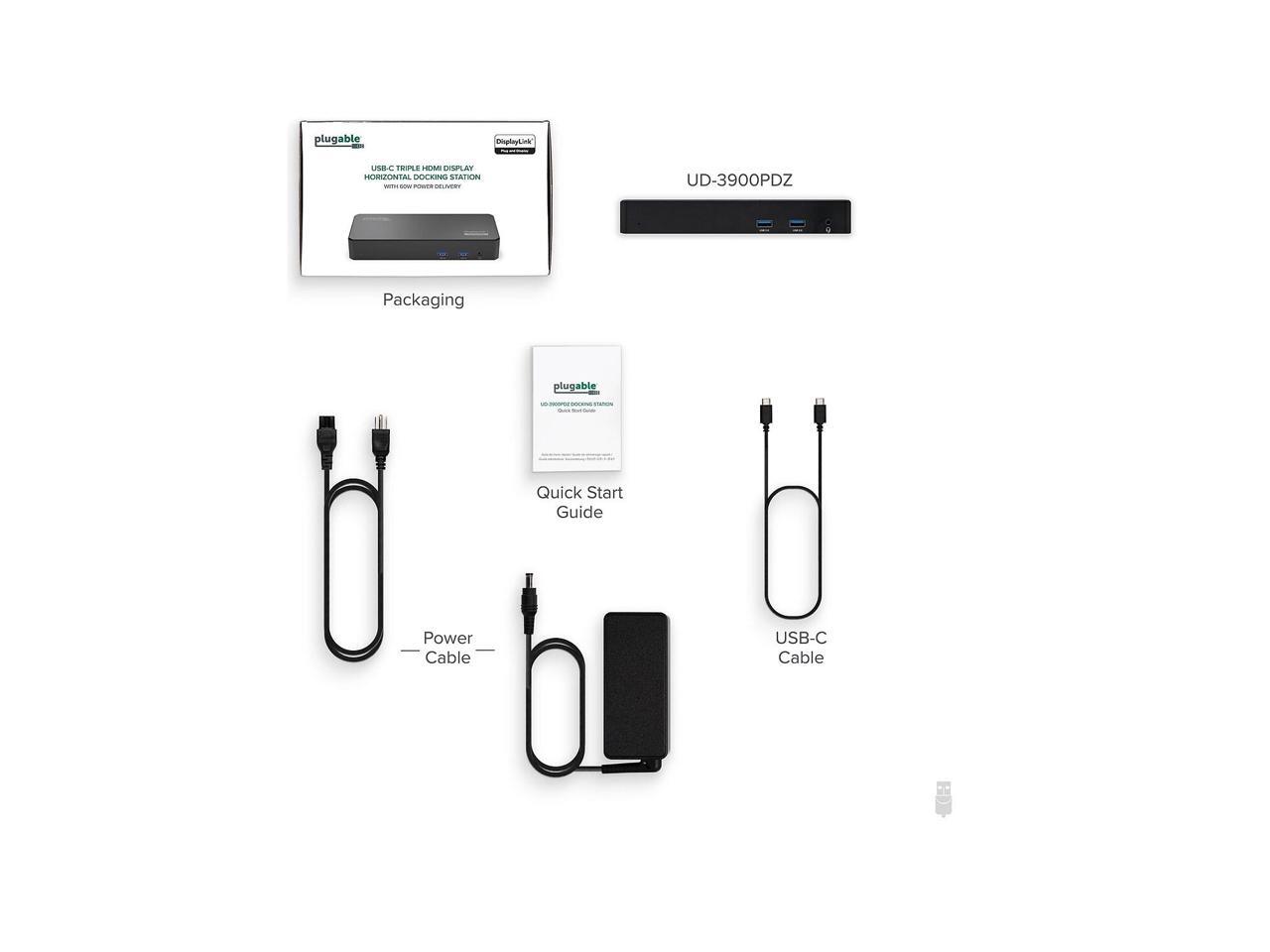 Plugable USB C Triple Display Docking Station with Laptop Charging, Thunderbolt 3 or USB C Dock Compatible with Specific Windows and Mac Systems (3x HDMI, 6x USB Ports, 60W USB PD)