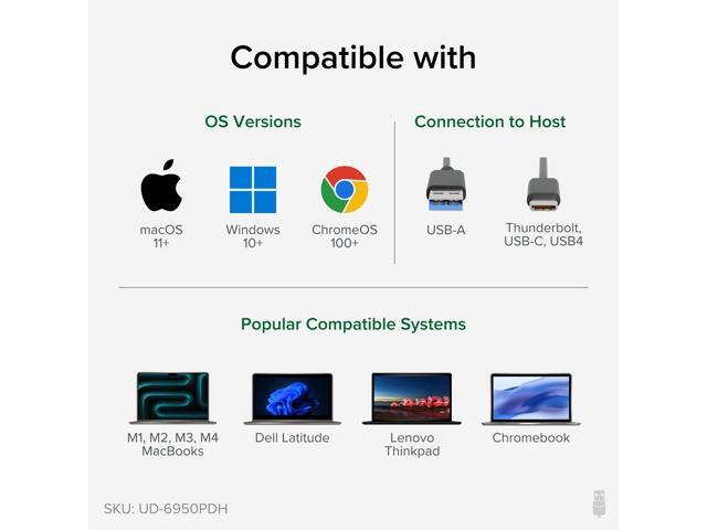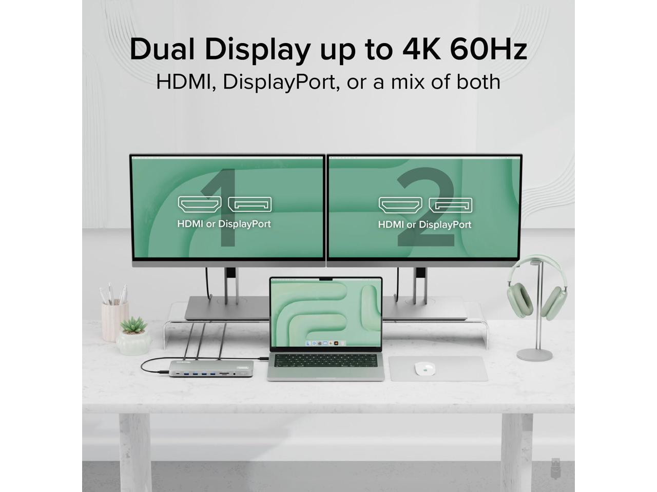 - Compatibility - Connected to a USB4, Thunderbolt 4 / 3, or full-featured USB-C port and Windows 10, Windows 11, ChromeOS 100.x or later, or macOS 11+, this dual display docking station lets you connect up to 2 monitors, even if your laptop only supports 1