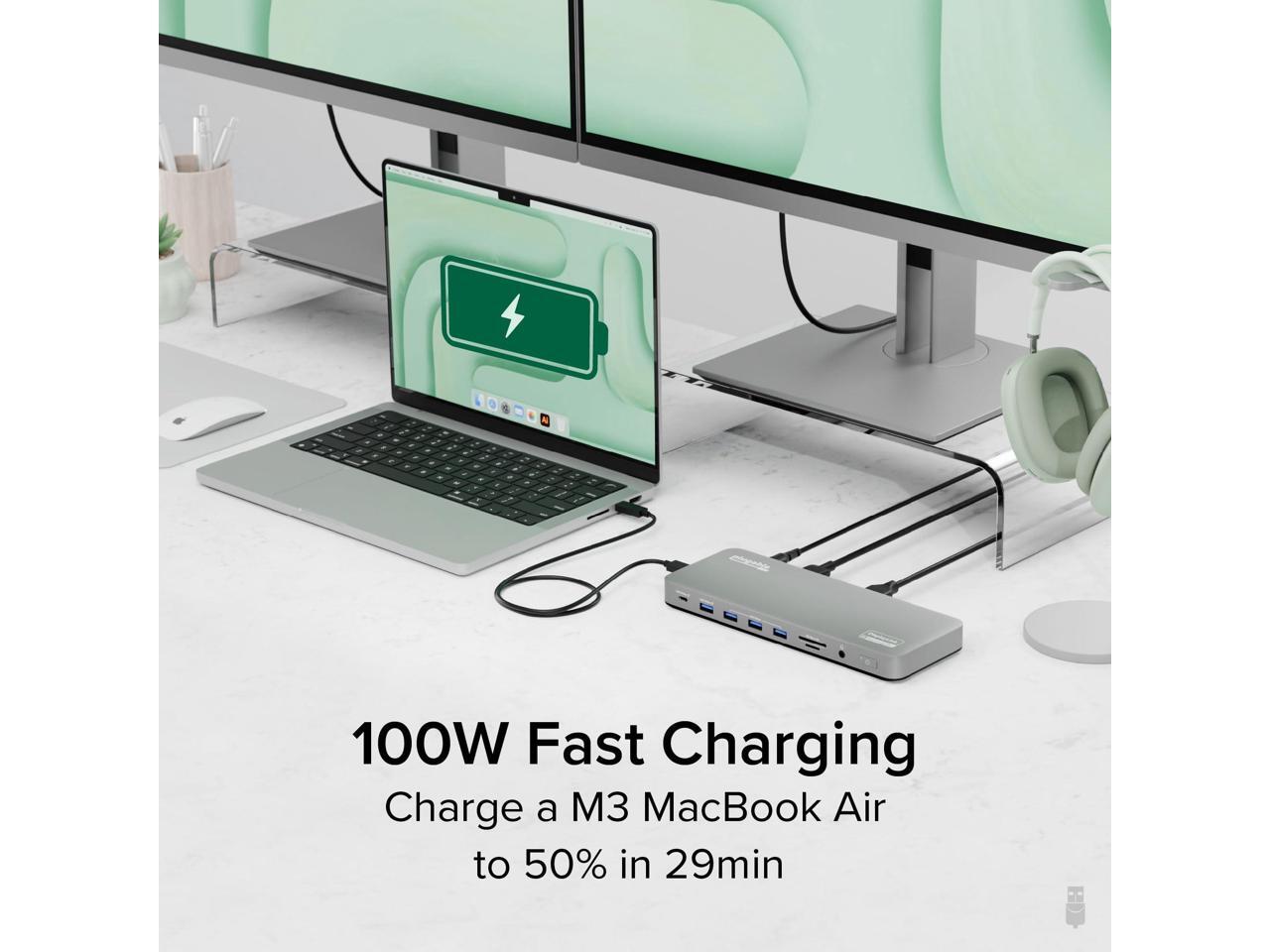 - 100W Charging - Leave your power cord in the bag. If your laptop supports USB-C Power Delivery, 100W charging provided by this USB C dock will ensure you get the right charge