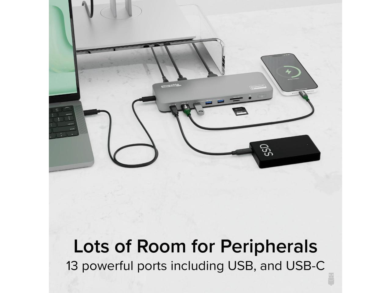 Plugable 13-in-1 USB C Docking Station Dual Monitor, 100W Charging, Dual 4K Displays 2x HDMI or 2x DisplayPort, Compatible with Mac, Windows, Thunderbolt, USB-C (5x USB, Ethernet, SD Card Reader)