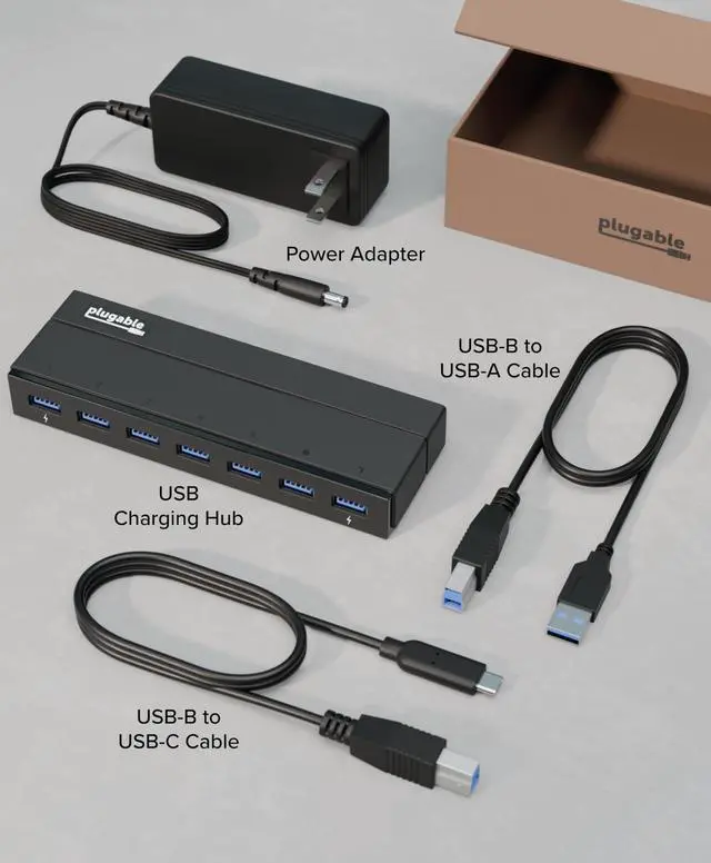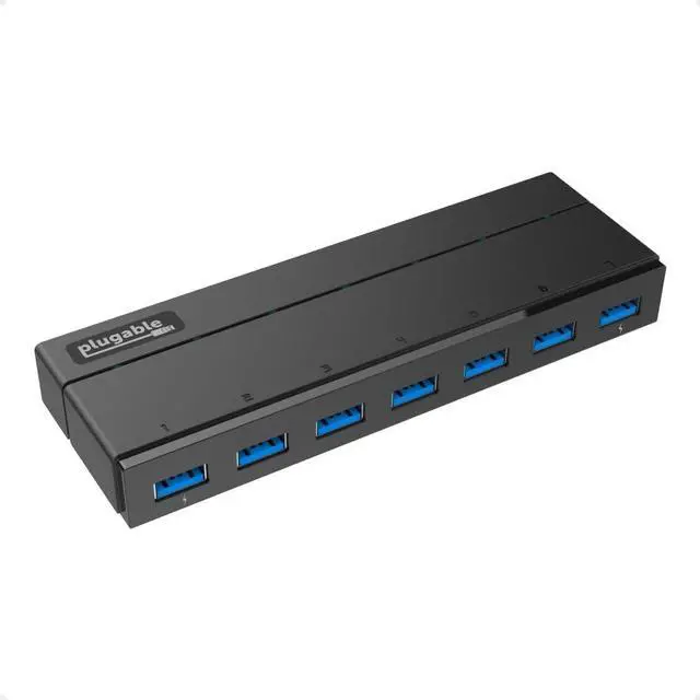 The Plugable USB3-HUB7C, is the ultimate solution for expanding USB connectivity on any USB 3.0 or 2.0-compatible laptop, desktop, or tablet. Designed for efficiency, this powered USB hub allows you to connect up to seven USB 3.0, 2.0, or 1.1 devices, making it an essential tool for USB expansion in both professional and home office setups.