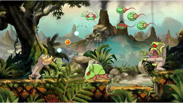 | Feature 2 | A masterfully made remake: The game has been entirely redrawn by hand by Philippe Dessoly, illustrator of well-known manga cartoons, such as Captain Harlock and UFO Robot Grendizer, comics and video games. He also worked on the Amiga version of Toki back in 1991 and the game Mr. Nutz in 1992. His drawings have further improved Toki's apish good looks. The music has been fully re-orchestrated by composer Raphaël Gesqua, providing a retro and modern soundtrack for Toki's adventure. This award-winning composer has created the music for more than one hundred video games. On the technical side, developer Pierre Adane has worked tirelessly to bring this thrilling experience to life. He also worked on Mr. Nutz (1992) and created the tennis game Top Spin (2003). |