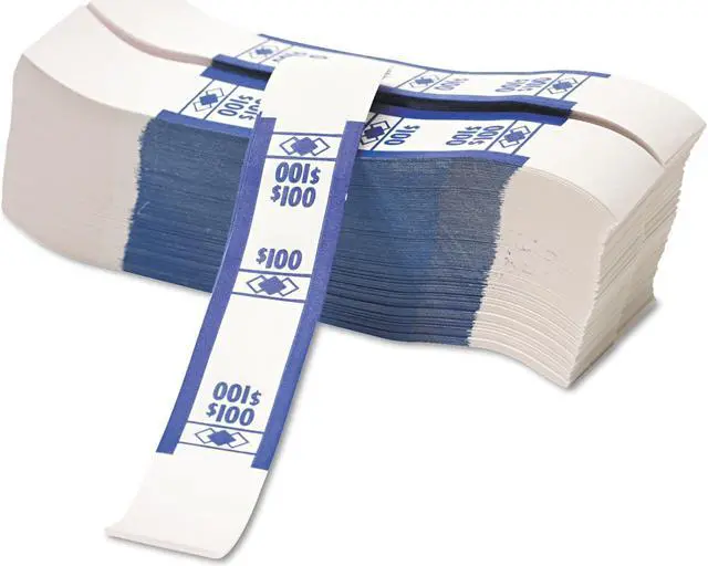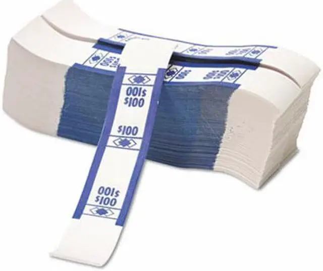 Organize your cash in pre-counted bundles with premium Kraft stock bands. Convenient Quick-Stick adhesive simplifies cash strapping tasks. Manufactured and color-coded to ABA standards. Wrapper Type: Self-Adhesive; Denomination: Dollar Bills; Total Dollar Value: $100.00; Color(s): White/Blue.
