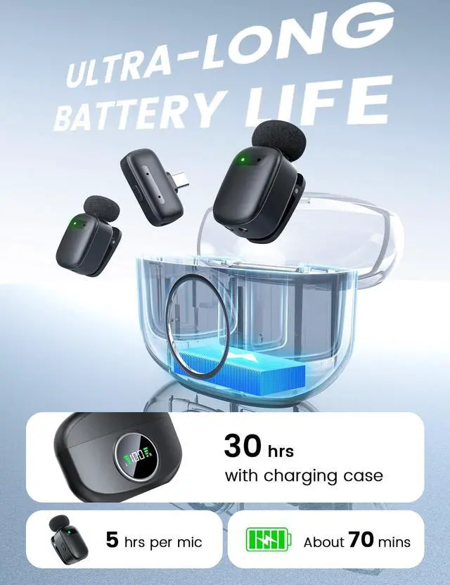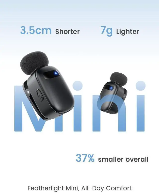 Elevate Your Content with the Size of a Fingertip You have the vision, the camera, and the story. Don't let bad audio hold you back. The Pnitri Ultra-Mini Wireless Microphone is designed for creators who demand professional sound without the bulk. Why Creators Choose Pnitri mic: The "Invisible" Advantage: We shrunk professional audio tech into a 0.28oz button-sized device. Your audience will focus on you and your message, not the black brick clipped to your shirt. Its the secret weapon for aesthetic TikToks and professional Reels. Studio Sound, Anywhere: From a windy beach to a busy cafe, our dual-layer protection (DSP Chip + Wind Muff) ensures your voice stays crisp. Its like carrying a soundproof studio in your pocket. Power That Keeps Up: With the compact charging case, your mic is always topped up and ready to go. 30 hours of total playtime means you can film all weekend on a single charge. Specs at a Glance: Compatibility: iPhone (Lightning) & Android/PC (USB-C) Range: 65ft / 20m (Line of Sight) Latency: Ultra-low (0.009s) for perfect Lip-Sync In the Box: 2x Mic, 1x Receiver, 1x Charging Case, 2x Wind Muffs.1x Lightning Port Ready to sound like a pro? Clip it on and start creating.