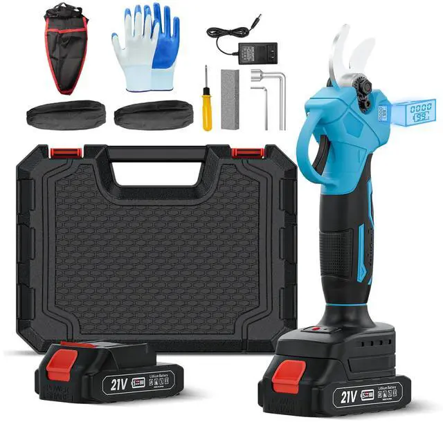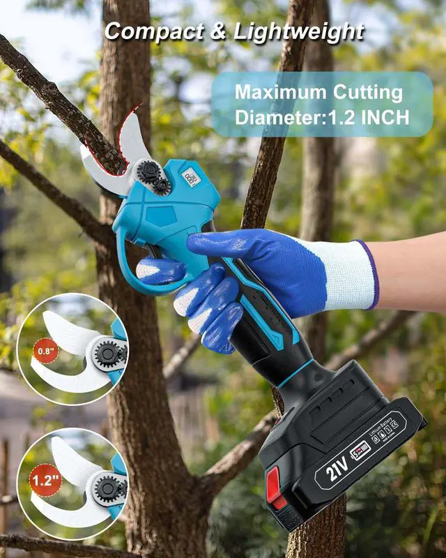 21V Cordless Electric Pruning Shears, Adjustable Cutting Diameter 0.8-1.2 IN Cordless Electric Branch Trimmer, Portable Pruning Shears for Garden with LCD Display and SK5 Blades(Two Battery)