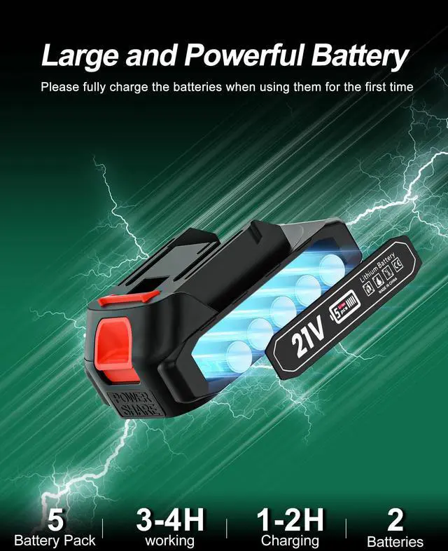 [Long-term battery] We are equipped with two high-efficiency batteries for POANES cordless electric pruning shears. those are battery pack composed of five batteries. After fast charging for 2 hours, it can last as high as 3h. This allows you no longer troubled by battery life.