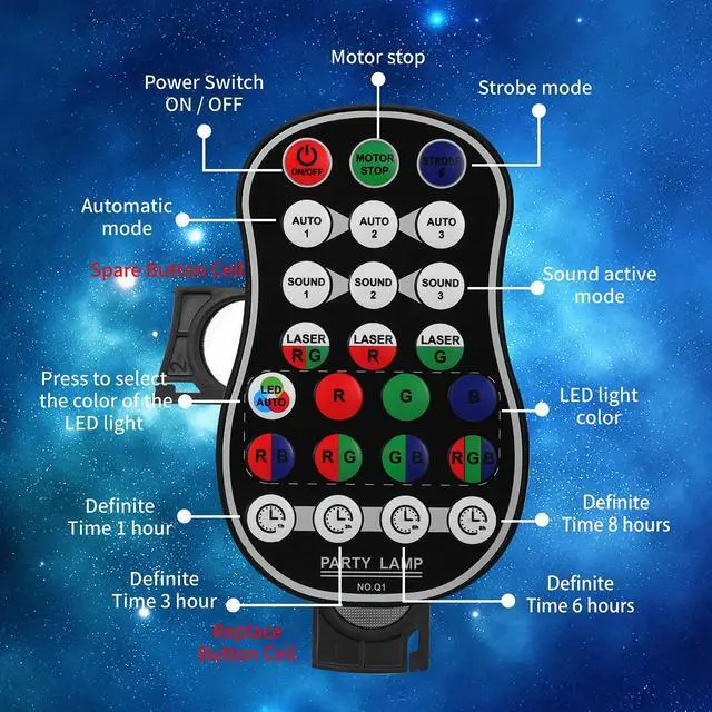 - With remote control you can change the lighting modes: auto mode, strobe mode and sound control mode.