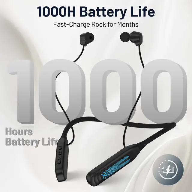 Neckband Bluetooth Headphones, 1000H Extra Battery Life with Display Magnetic Earphones, Wireless Stereo Earbuds with Microphone, Waterproof in-Ear Headset for Sports/Workout/Office (Black)