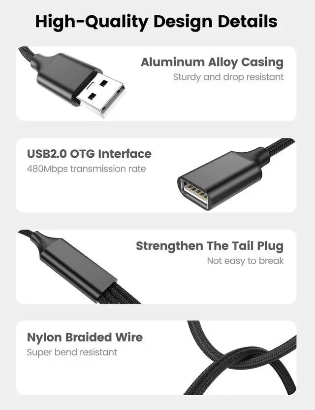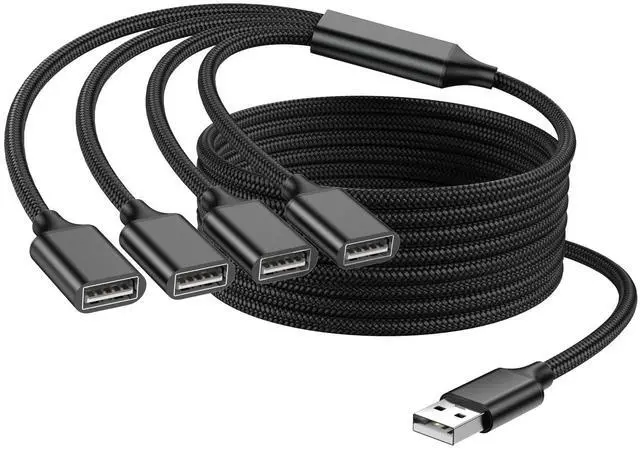 6.6ft 1 in 4 Out USB Splitter Cable Built with double-braided nylon and aluminum casing. They are highly resistant to daily twists and bends and not prone to tangling up. The flexible and wear-resistant armor nylon braided material offers stronger protection.