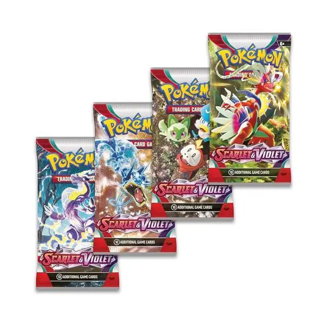 Set out for a journey in the Paldea region! Meet first partners Sprigatito, Fuecoco, and Quaxly, and explore the power of the Legendary Pokmon Koraidon and Miraidon as Pokmon ex. In the Pokmon TCG: Scarlet & Violet expansion!