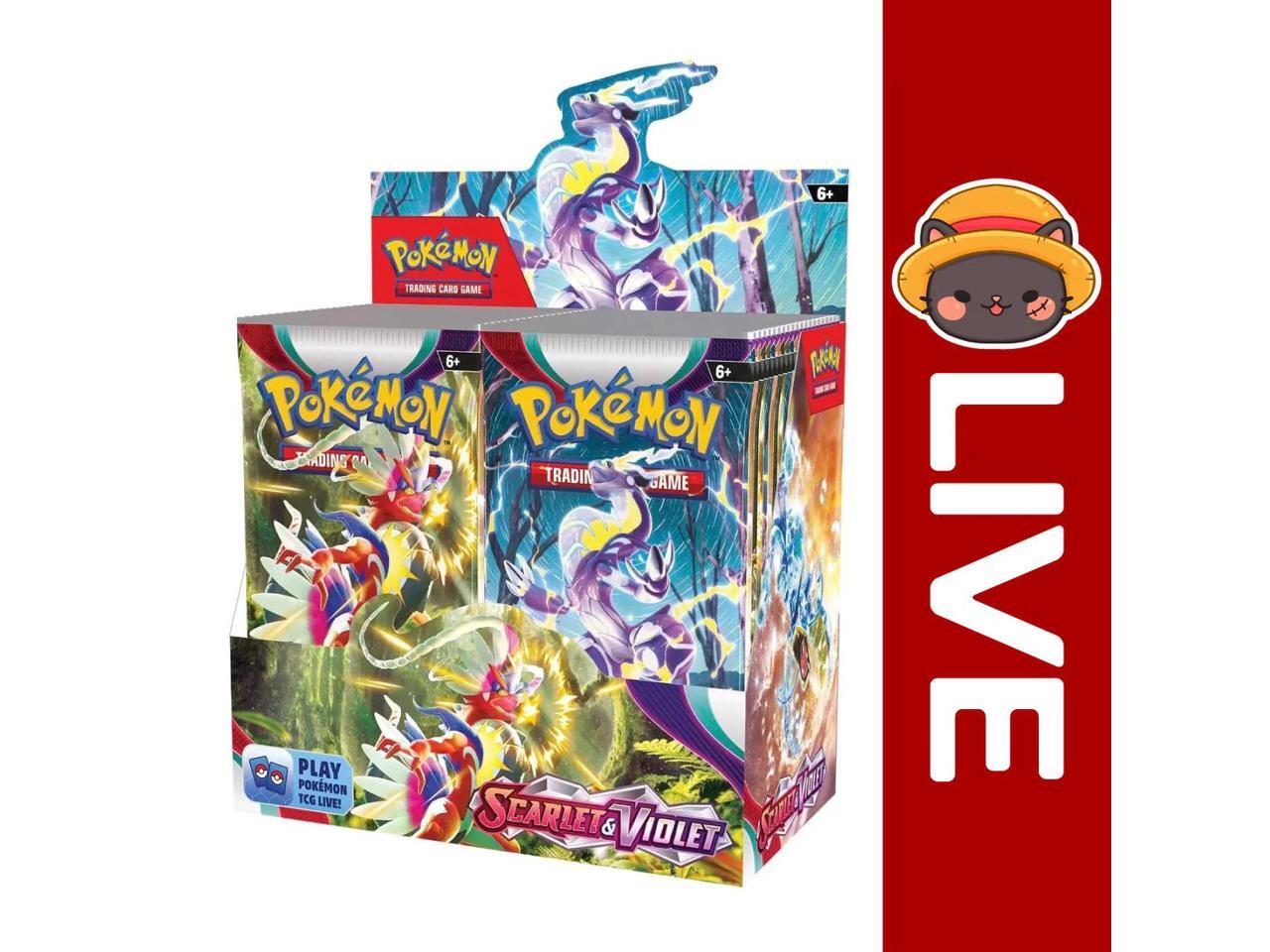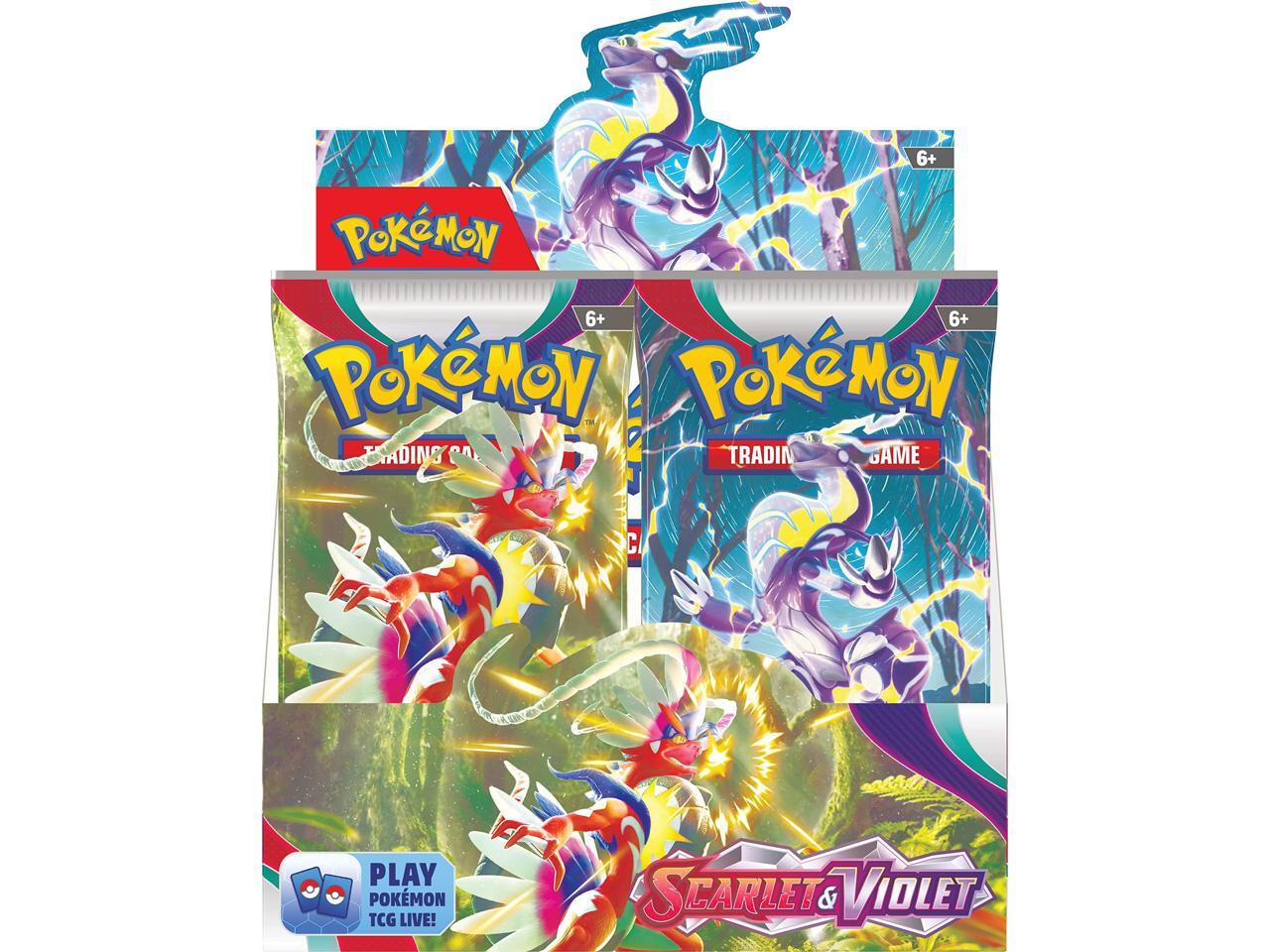The Pokemon TCG: Scarlet & Violet Booster Display Box contains 36 booster packs from the New Pokemon TCG: Scarlet & Violet expansion