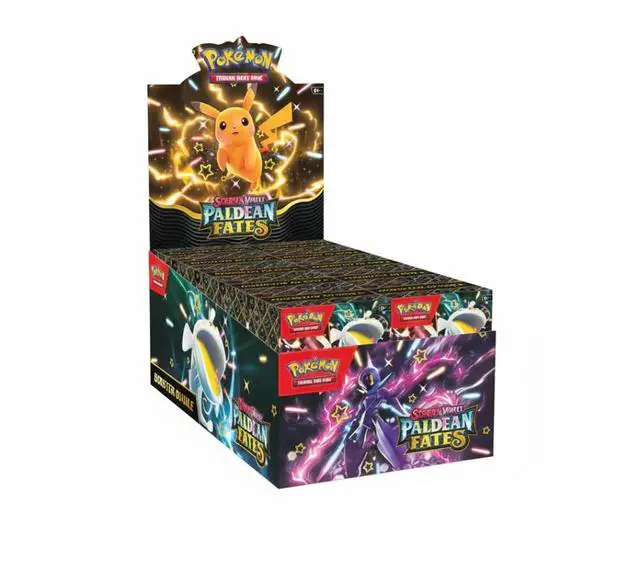 Shine Bright with Pokémon from Paldea! The spotlight glistens on Shiny Pokémon making their fated return to the Pokémon TCG! Shiny Pikachu blazes the path forward as Tinkaton, Ceruledge, Dondozo, and more than 100 other Shiny Pokémon follow. Meanwhile, Great Tusk and Iron Treads appear as Ancient and Future Pokémon ex, and Charizard, Forretress, and Espathra show off their own unique skills as Shiny Tera Pokémon ex. Shed some light and discover sparkling wonders in the Scarlet & Violet-Paldean Fates expansion! Expand your collection with this Booster Bundle containing six booster packs from Pokémon TCG: Scarlet & Violet-Paldean Fates!
