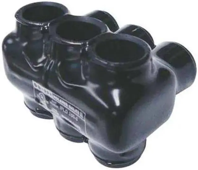 Multitap Connector, Body Material Aluminum, Color Black, Finish Plastisol, For Conductor Material Aluminum, Copper, For Stranded Copper Wire Size - Minimum 6 AWG, For Stranded Copper Wire Size - Maximum 350 kcmil, Head Style Hex, Hex Size 5/16 in, Insulation Material Plastisol, Maximum Temperature 194 Degrees F, Maximum Voltage 600 V, Number of Ports 3, UL 94 Flammability Rating Not Applicable, RoHS Compliant Yes, Standards cULus, UL 486A, Compatible with Product Type Copper and Aluminum Cables. This item has been restricted from sale in the following state (s): []