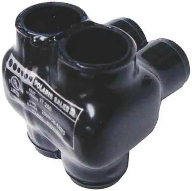 Multitap Connector, Body Material Aluminum, Color Black, Finish Plastisol, For Conductor Material Aluminum, Copper, For Stranded Copper Wire Size - Minimum 6 AWG, For Stranded Copper Wire Size - Maximum 250 kcmil, Head Style Hex, Hex Size 5/16 in, Insulation Material Plastisol, Maximum Operating Temperature 194 Degrees F, Maximum Voltage 600 V, Number of Ports 2, UL 94 Flammability Rating Not Applicable, RoHS Compliant Yes, Standards cULus, UL 486B. This item has been restricted from sale in the following state (s): []