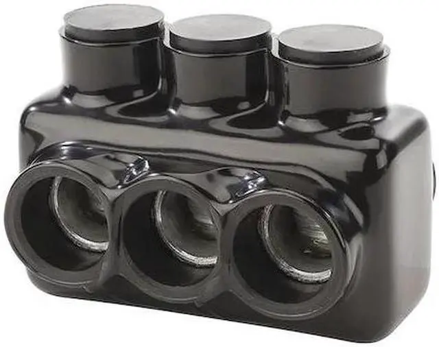 Multitap Connector, Body Material Aluminum, Color Black, Finish Plastisol, For Conductor Material Aluminum, Copper, For Stranded Copper Wire Size - Minimum 6 AWG, For Stranded Copper Wire Size - Maximum 600 kcmil, Head Style Hex, Hex Size 5/16 in, Insulation Material Plastisol, Maximum Temperature 167 Degrees F, Maximum Voltage 600 V, Number of Ports 3, UL 94 Flammability Rating Not Applicable, RoHS Compliant Yes, Standards cULus, UL 486A, Compatible with Product Type Copper and Aluminum Cables. This item has been restricted from sale in the following state (s): []