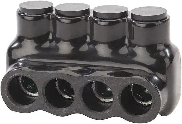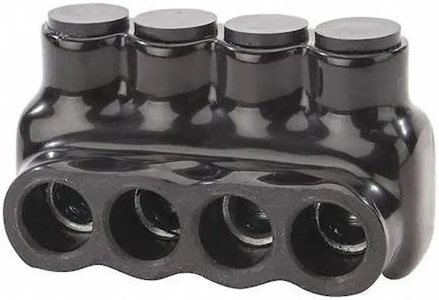 Multitap Connector, Body Material Aluminum, Color Black, Finish Plastisol, For Conductor Material Aluminum, Copper, For Stranded Copper Wire Size - Minimum 14 AWG, For Stranded Copper Wire Size - Maximum 1/0 AWG, Head Style Hex, Hex Size 3/16 in, Insulation Material Plastisol, Maximum Operating Temperature 194 Degrees F, Maximum Voltage 600 V, Number of Ports 4, UL 94 Flammability Rating Not Applicable, RoHS Compliant Yes, Standards cULus, UL 486B. This item has been restricted from sale in the following state (s): []