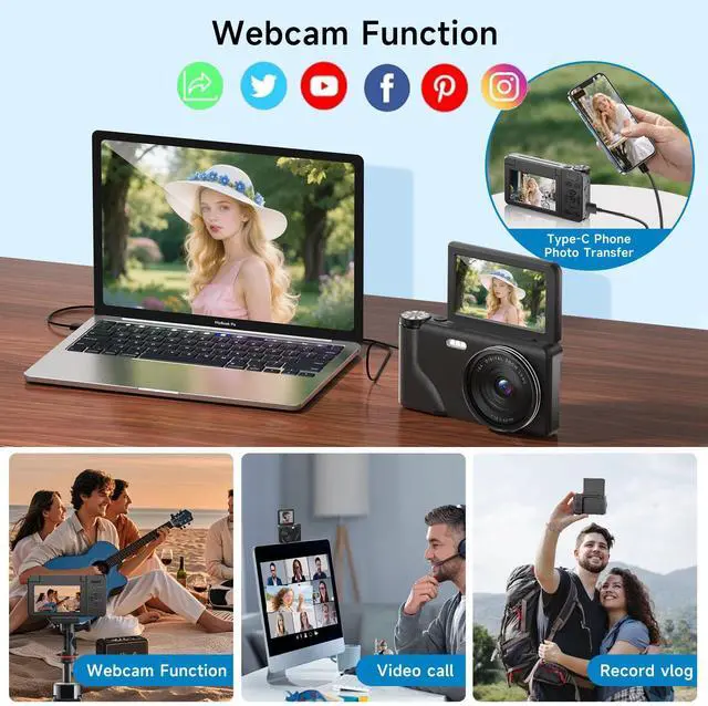 Stunning 4K 64MP Camera: Preserve your precious memories in breathtaking 4K Ultra HD video and 64MP high-resolution images with this digital camera.Take your photography to the next level with a variety of built-in filters for a uniquely creative experience.