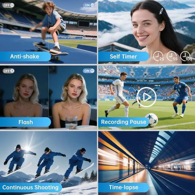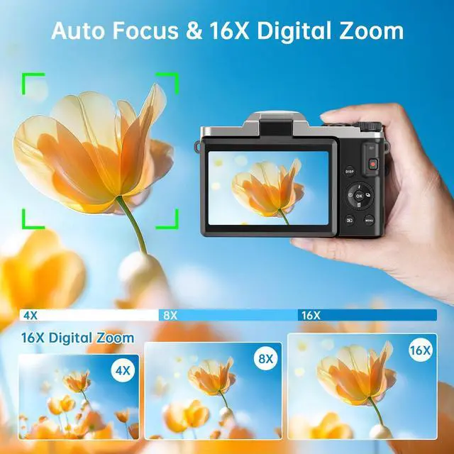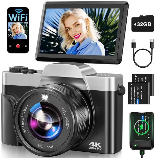 | Features | Take still images mode & Video recording mode, WIFI transfer, Built-in MIC, Compact, Date Imprint or no, high visibility, image stabilization, built-in fill light, Anti-shaking, Digital zoom in&zoom out, Webcam Function, Pause Function, Continuous shooting, Motion detection, Slow motion, Time-lapse recording, AUTO OFF, Self-timer, Selfie, Digital camera, Vlogging camera, Video Camera, 4K Cameras for photography, 4K Vlogging camera for YouTube, 4K Video camera, Point and shoot digital cameras |