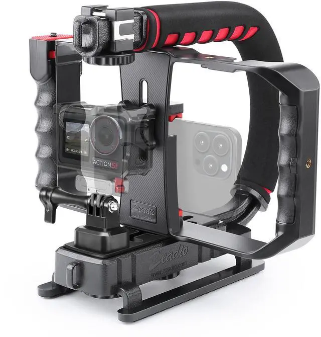 All cameras, smartphones, video lights, microphones, tripods and other photography equipments can be connected together through Zeadio Video Rig+.