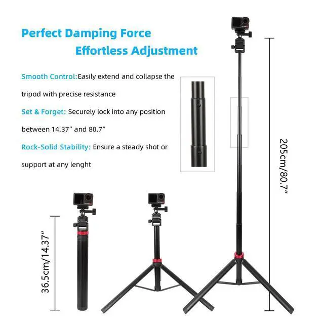 81" Extendable Selfie Stick Tripod Stand for Gopro camera, Vlogging YouTube/Tiktok Video Recording, Compatible with GoPro Max Hero 14 13 12 11 10 9 8,DJI Action 6 5 pro 4 3,DSLR14-81