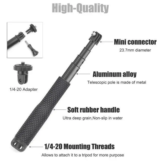 7''-23'' Aluminum Extendable Selfie Stick Compact Hand Grip Waterproof Monopod Pole for GoPro and Most Action Camera