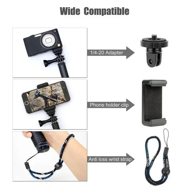 ![]() 45 Inches Pole | ![]() 23 Inches Pole | ![]() 3in1 Tripod Stand | ![]() Shorty Tripod Stand | ![]() Floating Tripod Stand | ![]() Ball Head Monopod | ![]() Floating Grip |