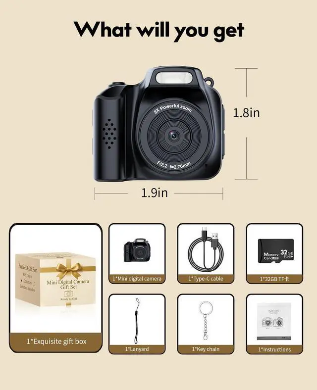 • A Special Gift to RememberReady to gift, this mini digital camera set arrives in a beautiful box a unique surprise for birthdays, holidays, or just because. Perfect for kids, teens, and photography lovers who adore retro cameras and vintage camera style. Make every memory extra special.