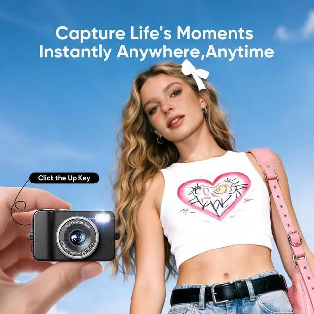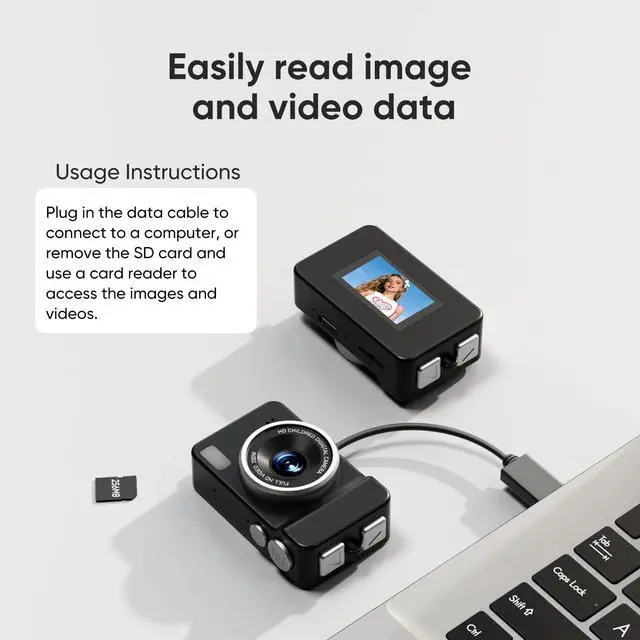 Mini Digital Camera 1080P HD Portable Vintage Keychain Camera with SD Card, Retro Pocket Camcorder for Travel Vlogging, Tiny Travel Camera for Kids, Teens & Adults, Easy Recording & Snap Photography