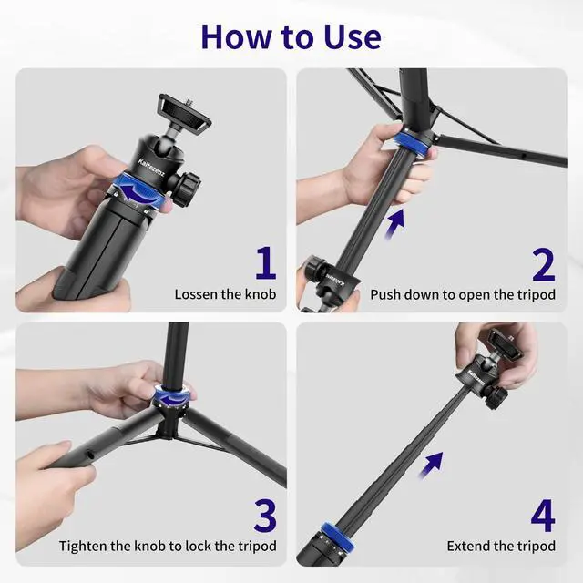 KT-1004 multi-functional telescopic selfie tripod is specially designed to adapt to gopro and camera. It is equipped with 1/4" screw interface and gopro adapter to achieve rich expansion. With professional upgrade and improvement, it is more comfortable to hold and the eight-section telescopic tube is more stable .Don't worry about breaking it, up to 62inch. The 360° ball head can adjust a variety of shooting angles, allowing you to capture the perfect shot.