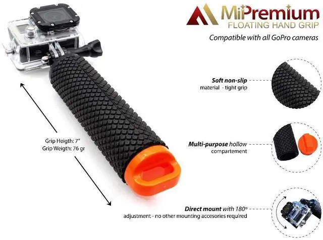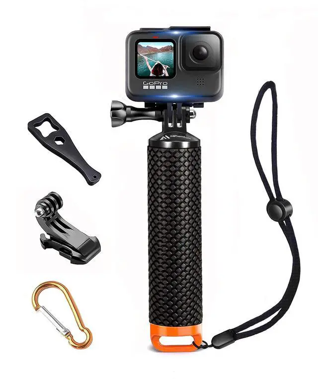 Our floating handler comes with standard built-in mount, allowing you to mount go pro or other action cameras without the need for additional mounting attachment accessories. Though your camera or camera case should have 2 fork mounting attachment.