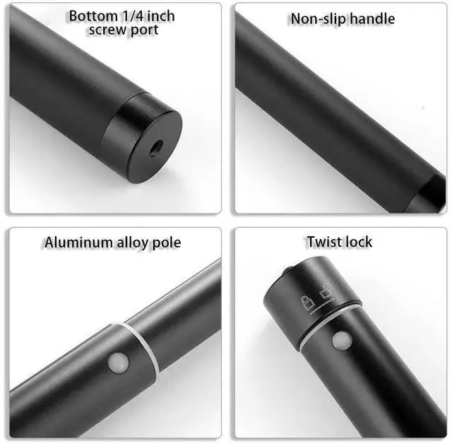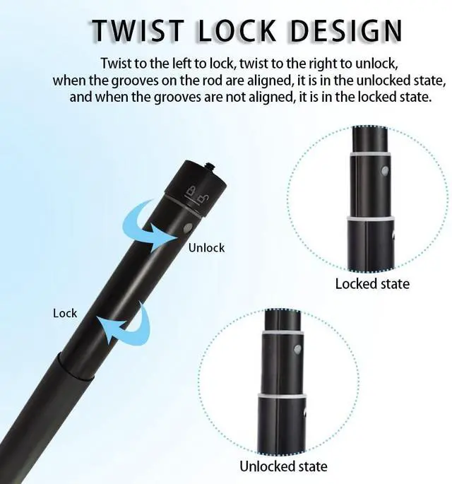 Twist lock design is convenient for expansion and contraction, and it is fixed and stable after tightening. It consists of five sections, and the length can be adjusted arbitrarily.