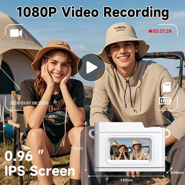 0.96-inch Screen & Easy-to-UseThis vintage digital camera features a 0.96-inch IPS screen, allowing you to easily preview photo and video in real-time. It features just 3 buttons, making it simple and intuitive to operate. Switch modes effortlessly and start recording quickly. This mini retro camera is a trendy item for social sharing, helping you take unique photos and create vibrant, engaging works.