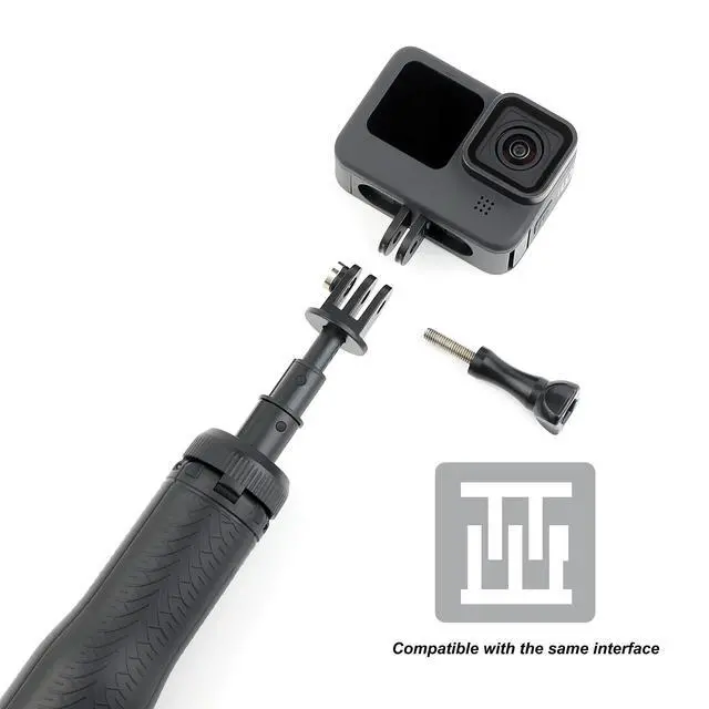 The bottom 1/4 inch nut interface allows for external connection, make your selfie stick extendable.