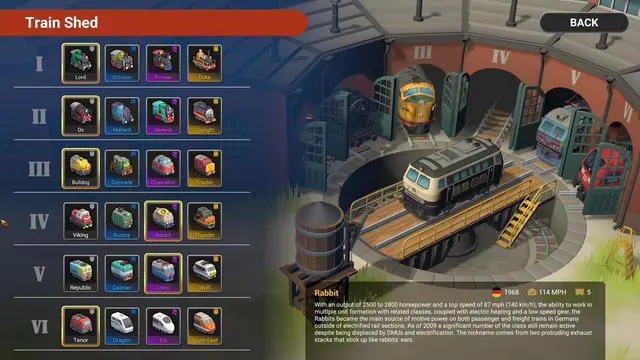 Unlock various locomotives, from steam engines to modern trains, as you play. Complete your collection and view it in the Shed!