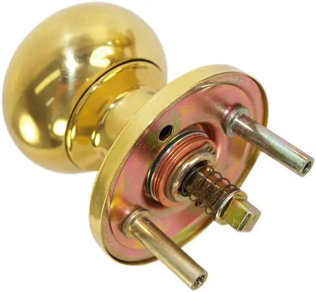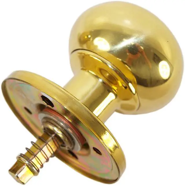 Marks USA KRW10-3 Polished Brass US3 Heavy Insert Round Knob Ball Assembly For Thru Bolted Mortise Lock Sets, specially designed as replacement knobs for the Marks# 7RW10, 9RW10, 5RW10, 55RW10, 22AC Iron Gate door lock, and most through bolted mortise lock sets. Each spring loaded spindle is 9/32" square, and the mounting screws are included for doors 1-3/4" thick. Knob and rose are per-assembled, packed one pair per box.